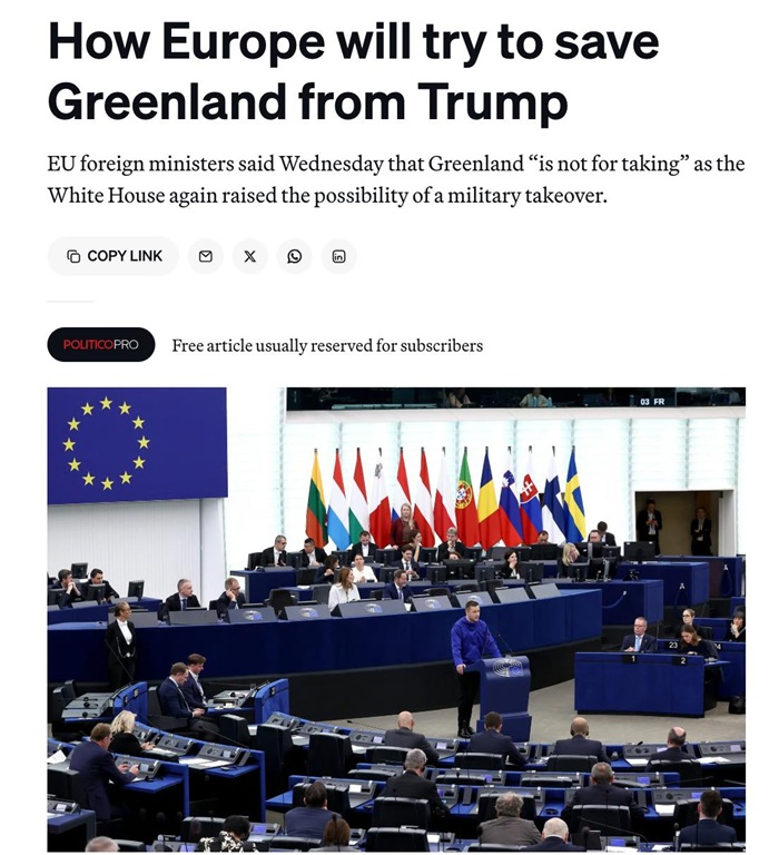 Наиболее рискованный вариант — отправка европейских войск в Гренландию по приглашению Дании. Берлин и Париж теоретически могли бы предоставить контингенты, хотя они не смогут противостоять полномасштабному вторжению США. Цель — повысить цену возможной агрессии. Однако цена ошибки здесь — человеческие жизни, что делает этот шаг «полностью неизведанной территорией».